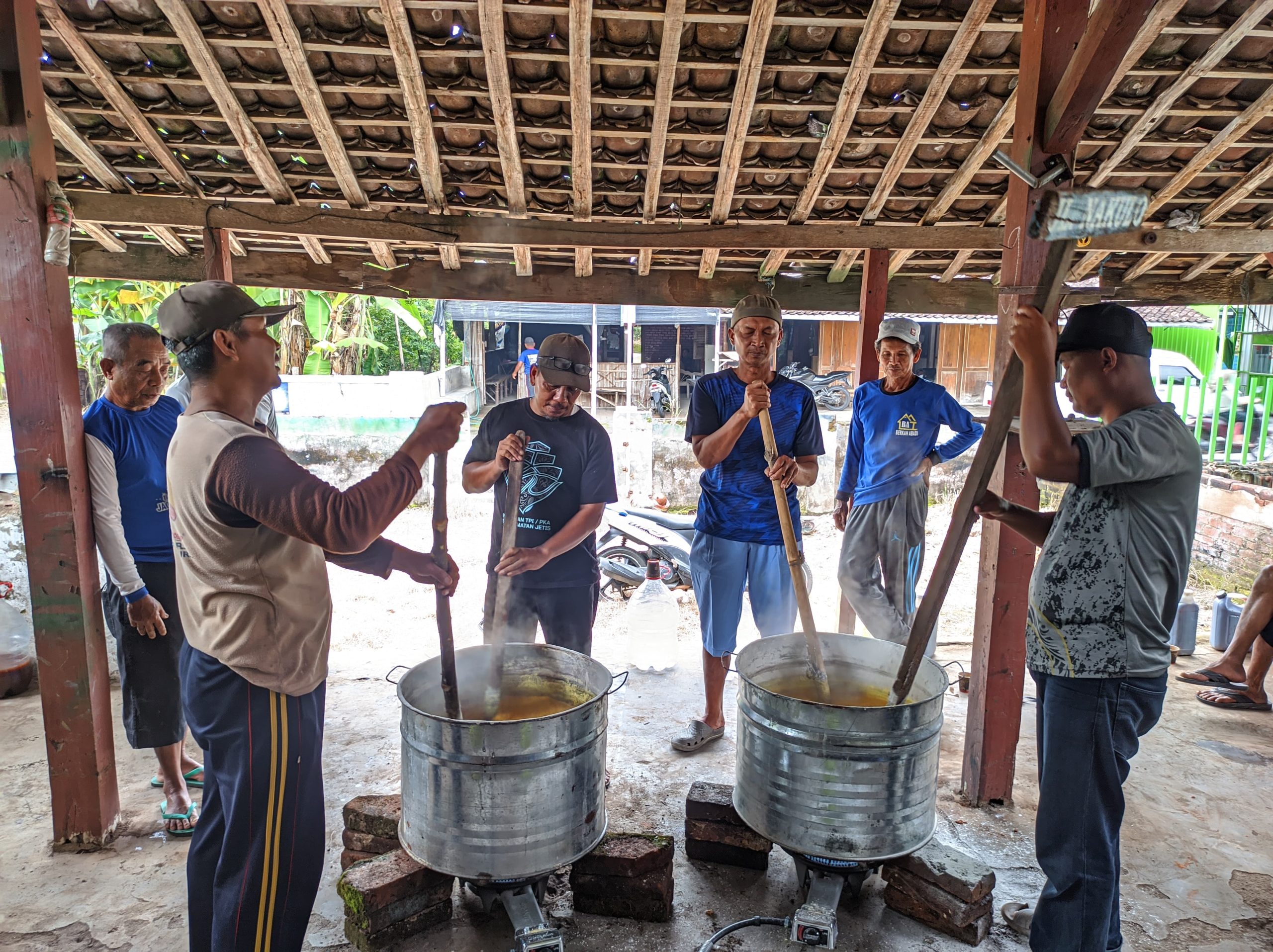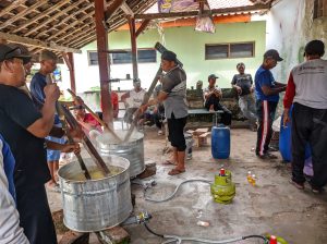 “Harapanya semua petani bisa memproduksi sendiri pupuk organik ini secara mandiri sebagai salah satu cara untuk menekan biaya produksi.” terang Sugiono, Ketua Gapoktan Desa Mojorejo. Pagi ini Minggu (2/2/2025) para petani di Desa Mojorejo secara bersama-sama melaksanakan kegiatan secara swadaya pembuatan Bubur California (BC) yg berbahan dasar gamping/kapur dan belerang yg direbus selama ± 1 jam.